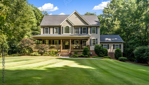 © John, Obraz premium New home with a spacious deck and well-maintained lawn, ideal for outdoor gatherings AI Generated