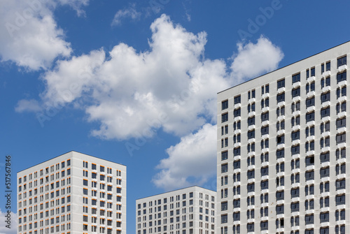 Naklejka premium New modern residential apartment buildings newly build on blue cloudy sky