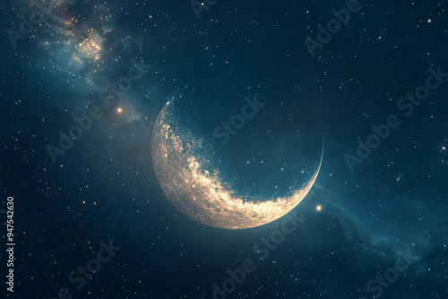 Fototapeta premium New Moon Enhances the Galaxy's Arm: A Pronounced Celestial Feature