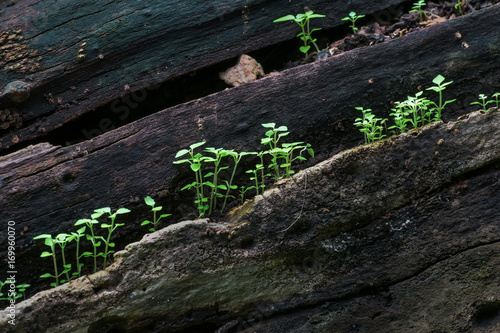 Fototapeta premium New plant growth on old tree trunk