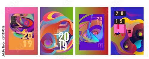 Fototapeta premium 2019 New Poster Design Template. Trendy Vector Typography and Colorful...
