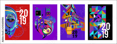 © yahya, Fototapeta premium 2019 New Poster Design Template. Trendy Vector Typography and Colorful Illustration Collage for Cover and Page Layout Design Template in eps10