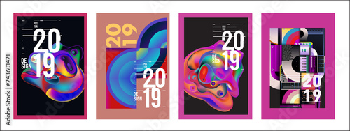 Fototapeta premium 2019 New Poster Design Template. Trendy Vector Typography and Colorful...