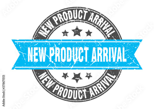 Obraz premium new product arrival round stamp with ribbon. label sign