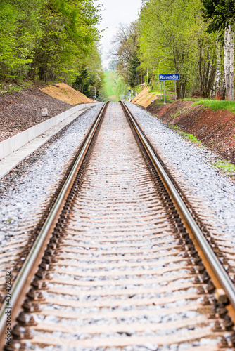 Fototapeta premium New renovated railroad in small village Borovnicka in Czech republic