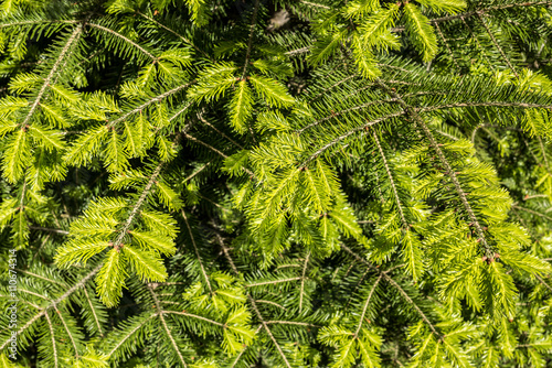 Fototapeta premium New sprout. Background of young spruce branches.
