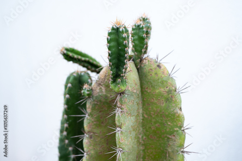 Naklejka premium New stem growing on Cereus peruvianus cactus. These are actually clones.