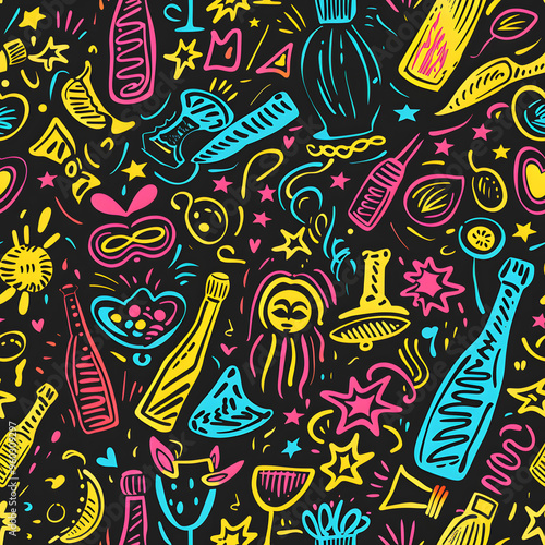 © anan, Obraz premium New Year and Christmas 2d cartoon or graphic advertising background, Seamless pattern