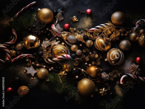 © Denis Darcraft, Naklejka premium New Year background with Christmas decorations Top view