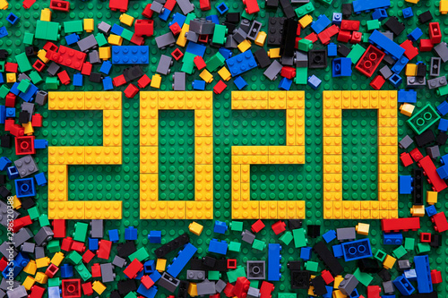 © Marko, Fototapeta premium New Year 2020 Bricks Toys Background