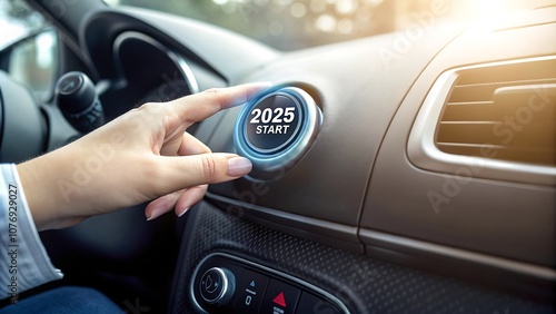 Fototapeta premium 2025 New Year, Car Ignition, Starting a New Year
