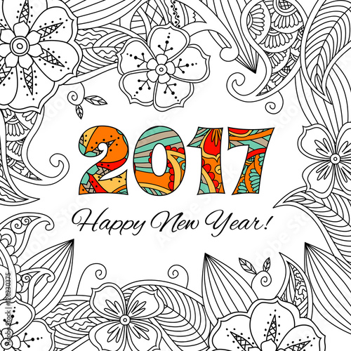 © verock, Naklejka premium New year card with numbers 2017 on floral background.