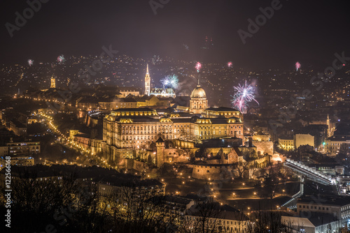 Obraz premium New Year Celebration. Buda Castle or Royal Palace in Budapest, Hungary with...