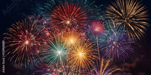 © Nardo leo, Naklejka premium New Year Celebration Spectacular Fireworks Festive Night Sky Colorful Lights Excitement and Joyful Vibes