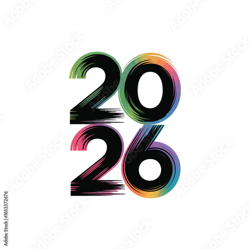 Naklejka premium 2026 New Year colorful design brush strokes art