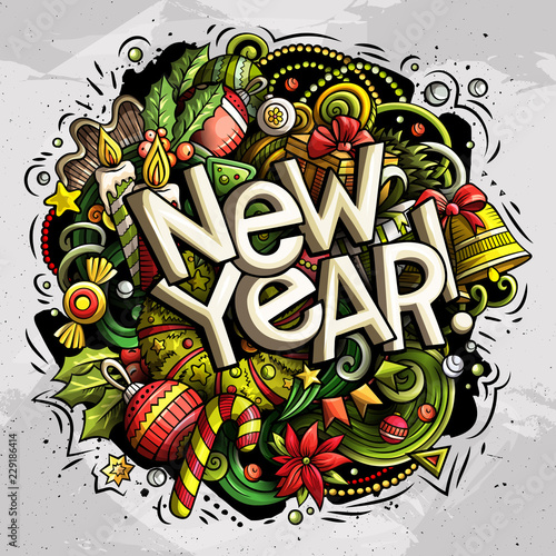 Obraz premium New Year doodles illustration objects and elements poster design
