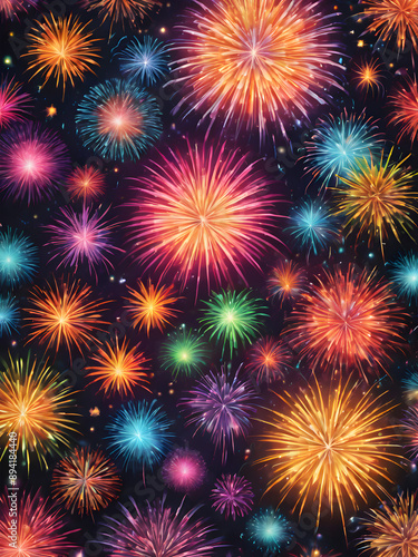 Naklejka premium New Year fireworks background with vibrant colors
