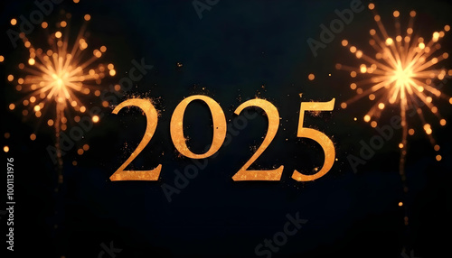 Fototapeta premium 2025 New Year Gold and Sparkles Background - Happy NYE Photo
