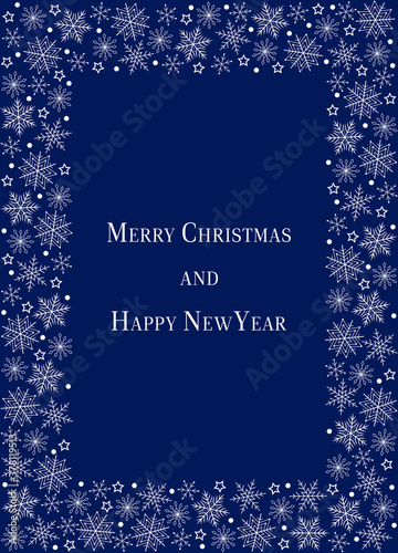 Fototapeta premium New Year greeting poster in classic style. Frame made of snowflakes. Christmas greetings.