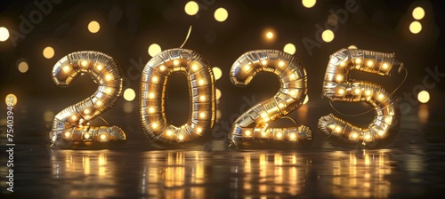 Obraz premium 2025 new year holiday card with big 3d golden numbers, dark background,...