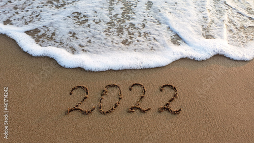 © Swetlana Wall, Fototapeta premium New Year 2022 is coming concept on tropical beach.