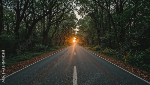 © Artem, Fototapeta premium New year 2025 journey through nature's sunset road