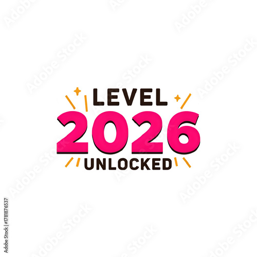 Fototapeta premium New Year 2026 Level Unlocked Celebration Graphic