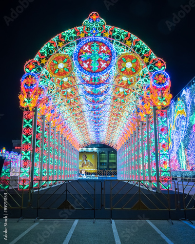 © jeafish, Obraz premium New year light show at Bangkok city hall
