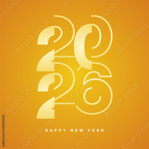 © simbos, Fototapeta premium New Year 2026 modern stencil line and bold light white yellow shining typography square composition on yellow orange isolated background icon logo
