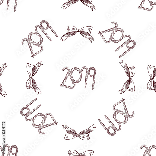 Obraz premium New Year 2019 monochrome seamless pattern. Stylish backdrop for Christmas...