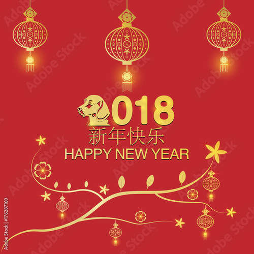 Fototapeta premium New Year party design. Chinese New Year Vector Design. Vector illustration. Year of the Dog