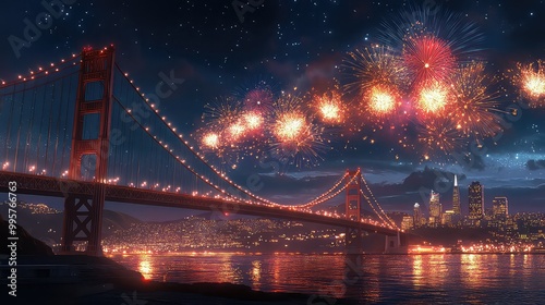 © tjut, Naklejka premium New Year's Eve Celebrations and Fireworks in Major Cities Around the World, Generative AI