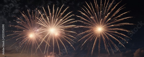 Fototapeta premium New Year's Eve fireworks exploding in the night sky, , bright lights