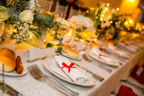 © fotosr52, Naklejka premium New Year's table arrangement for a festive lunch