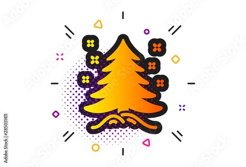© blankstock, Obraz premium New year spruce sign. Halftone circles pattern. Christmas tree present icon. Fir-tree symbol. Classic flat christmas tree icon. Vector