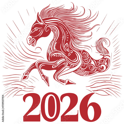 Obraz premium 2026, new year, year of the horse, asia, vector, transparent background,...
