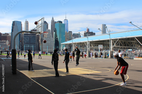 © Brad Pict, Fototapeta premium New York / Brooklyn Pier 2 - Terrain de sports avec skyline en arrière plan