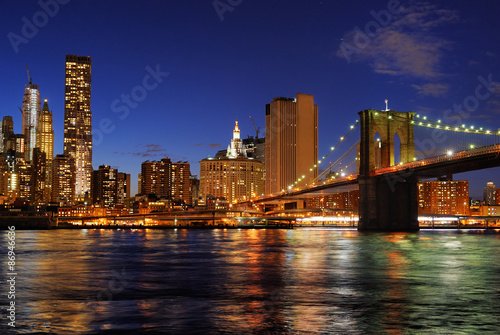 Naklejka premium New York City Brooklyn Bridge with downtown skyline