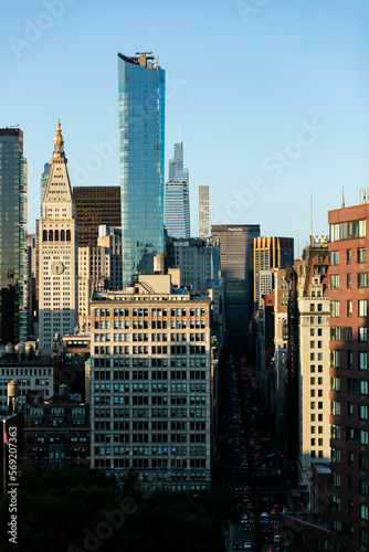 © Sophie, Fototapeta premium new york city buildings on clear day with blue skies