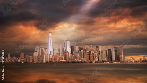 © maramas, Fototapeta premium New York City Manhattan downtown skyline in evening with stormy sky