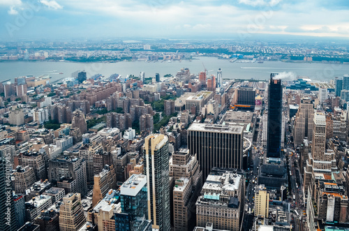 © AlexTaoWang, Fototapeta premium New York City Manhattan skyline panorama with skyscrapers and buildings.