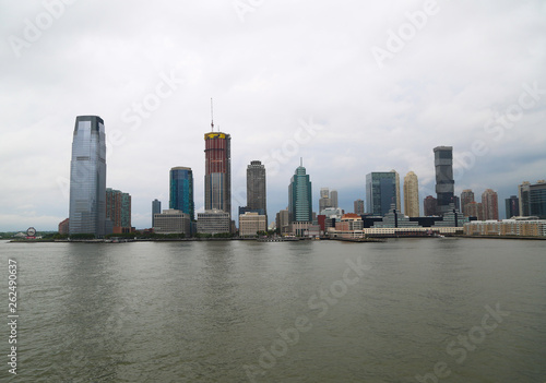 © Natasa, Fototapeta premium New York city on a gloomy day - panorama view from the water