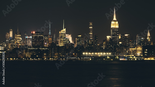 © MaciejBledowski, Fototapeta premium New York City panorama at night, color toning applied, USA.