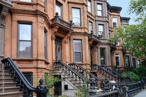 Fototapeta premium New York City, row of old brownstone townhouses with attractive detailed...
