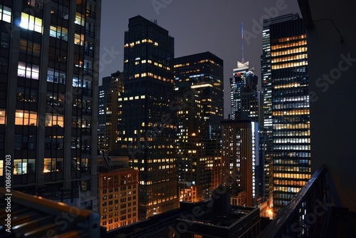 Naklejka premium New York city skyline and skyscraper night town architecture.