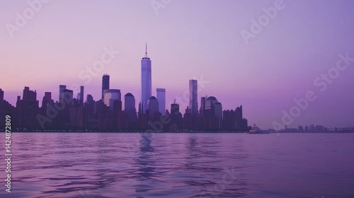 © minang, Fototapeta premium New York City skyline at dawn, bathed in lavender hues.