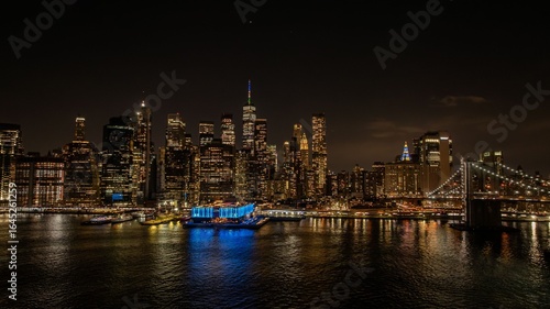 Fototapeta premium New York City skyline at night with Brooklyn Bridge.