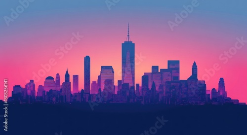 © bejo, Fototapeta premium New York City Skyline at Sunset - Vibrant Colors