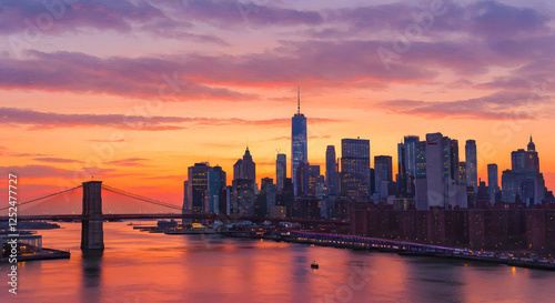 © almahyra, Fototapeta premium New York City Skyline at Sunset with Brooklyn Bridge View