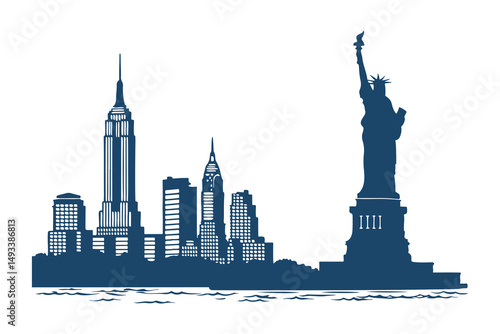Naklejka premium New York City skyline silhouette vector clipart isolated illustration, iconic...